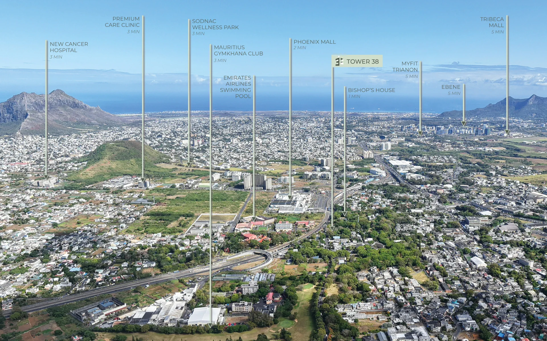 Emerging boldly from the Mauritian landscape, Tower 38 embodies contemporary elegance. Its distinctive 3/8 silhouette, rising from three to eight storeys, achieves a perfect harmony of form, proportion, and purpose.